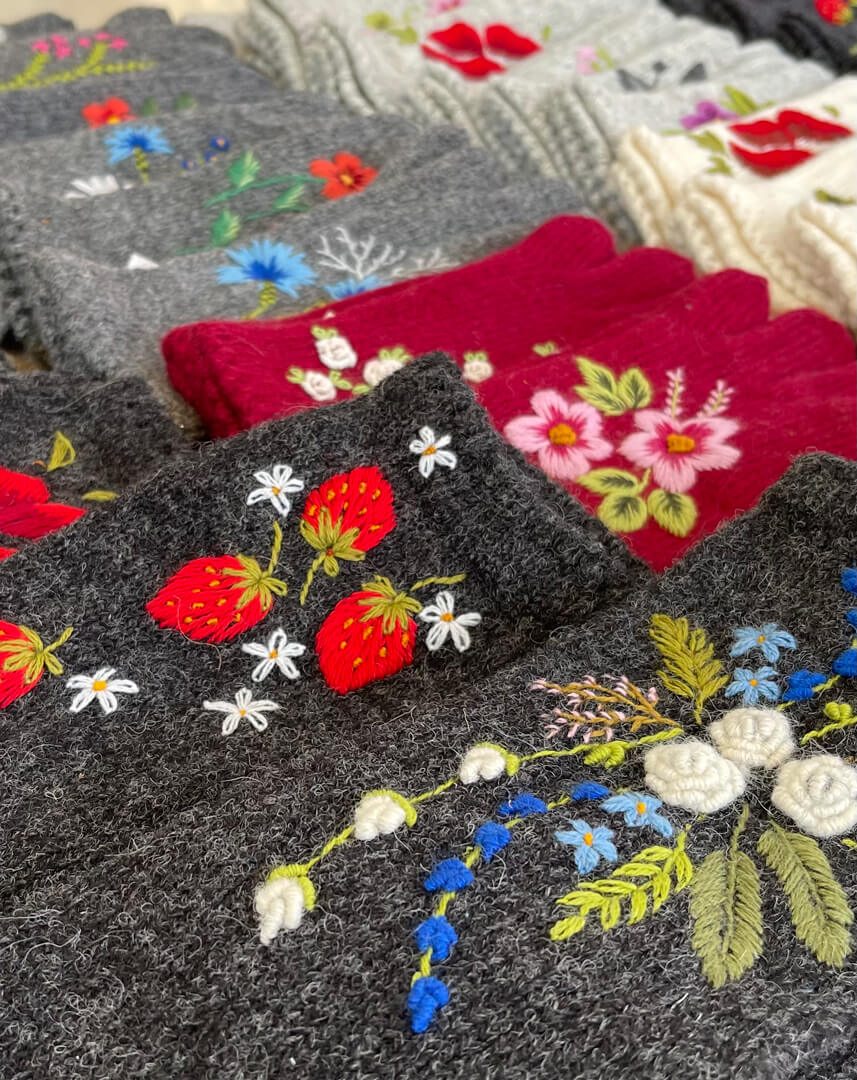 Käsikudumismasinal kootud ja käsitsi tikitud sõrmikud