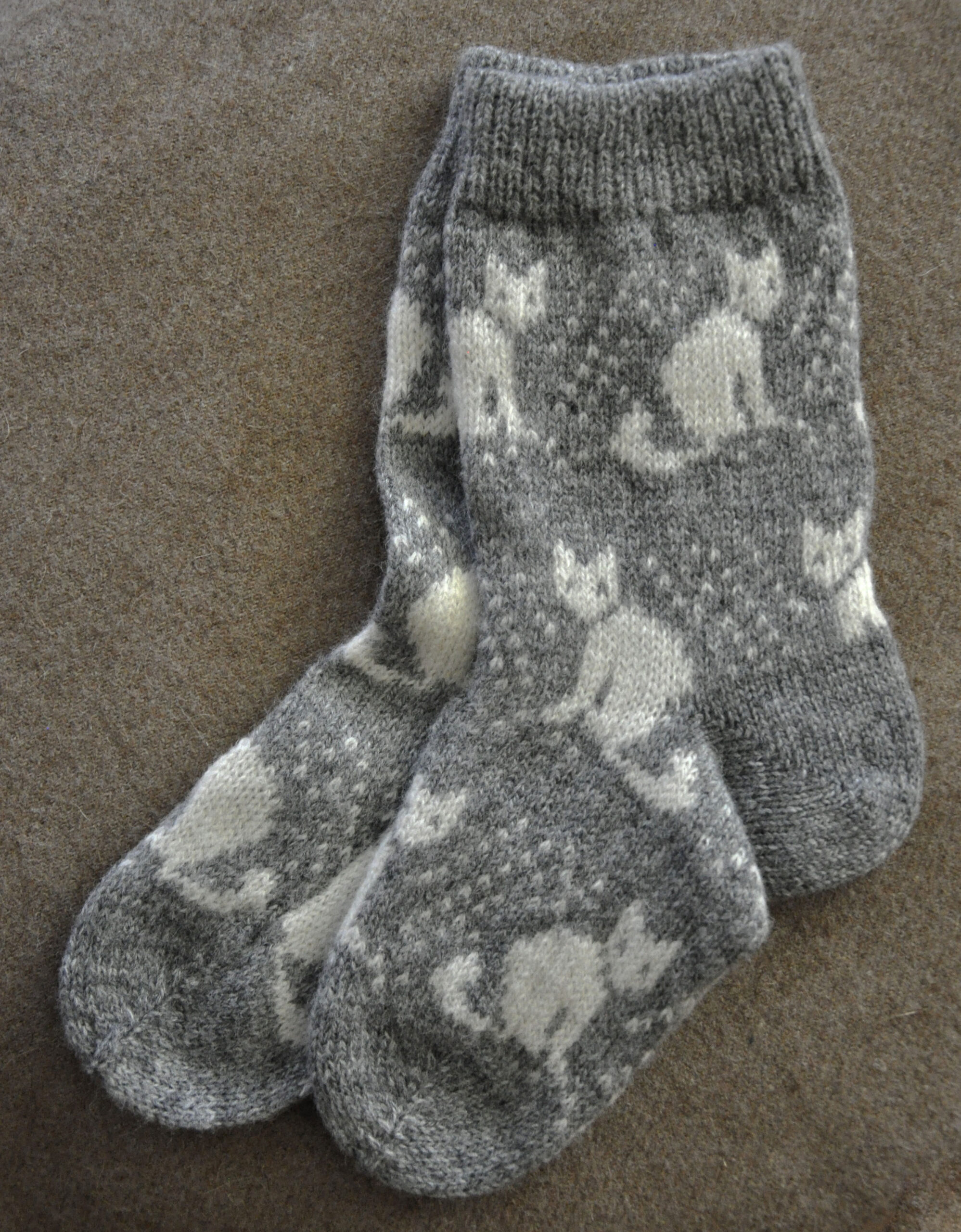 Kirjeldus: Käsikudumismasinal kootud sokid.