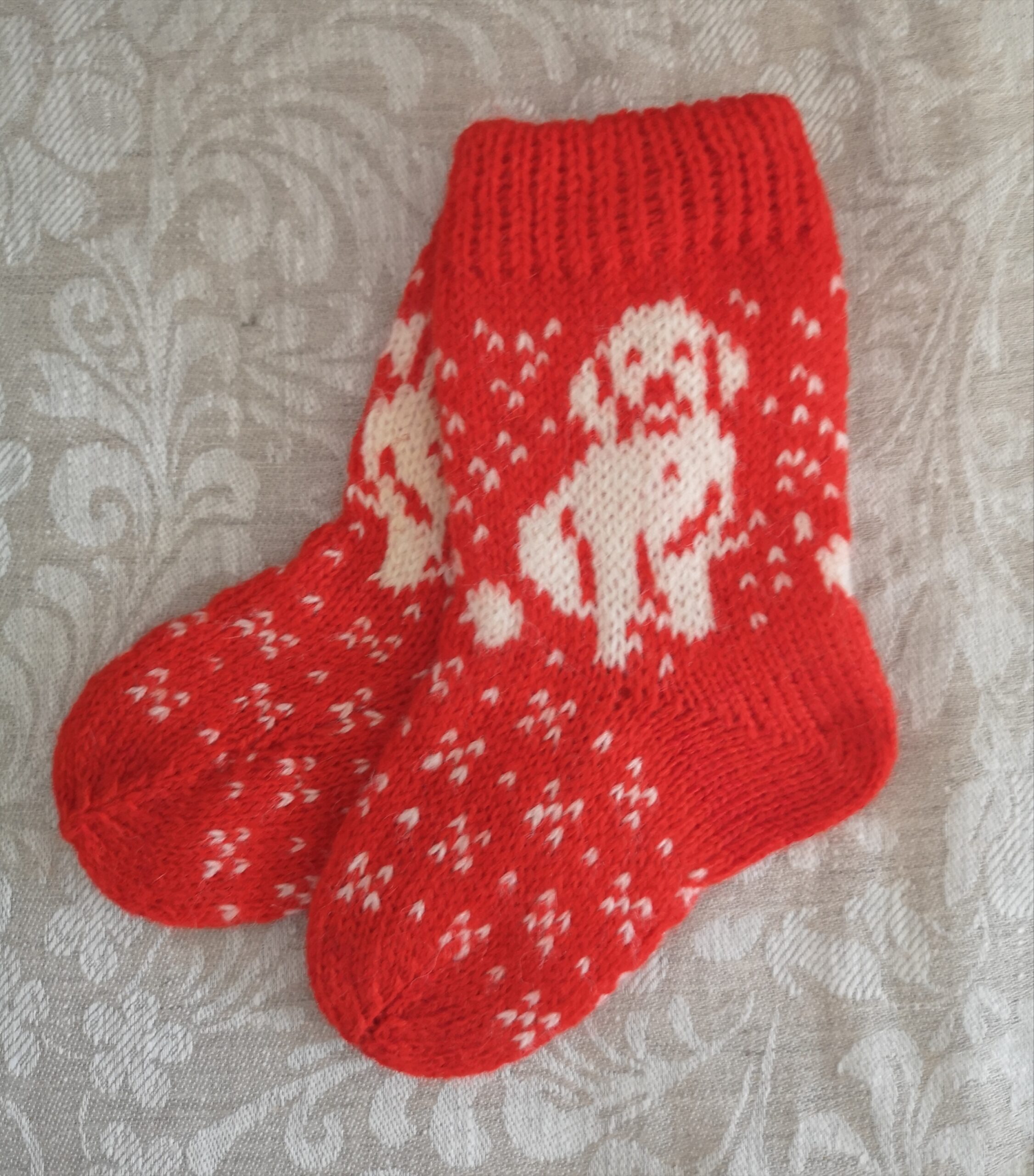 Kirjeldus: Käsikudumismasinal kootud sokid.