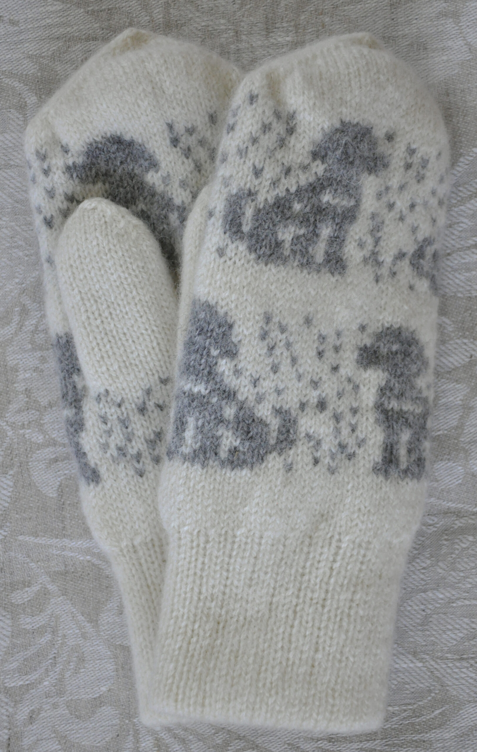 Kirjeldus: Käsikudumismasinal kootud topeltlabakindad