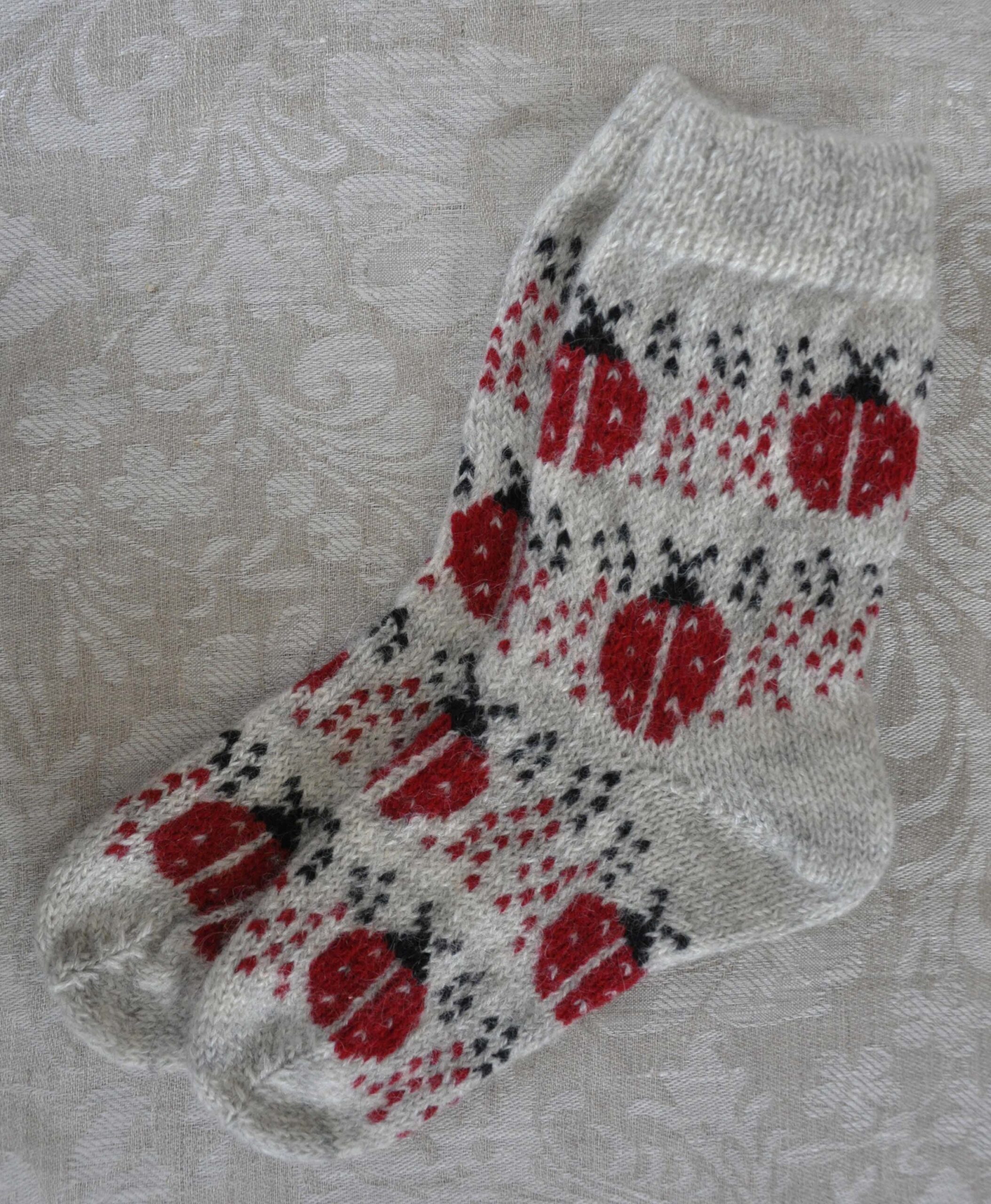 Kirjeldus: Käsikudumismasinal kootud sokid.