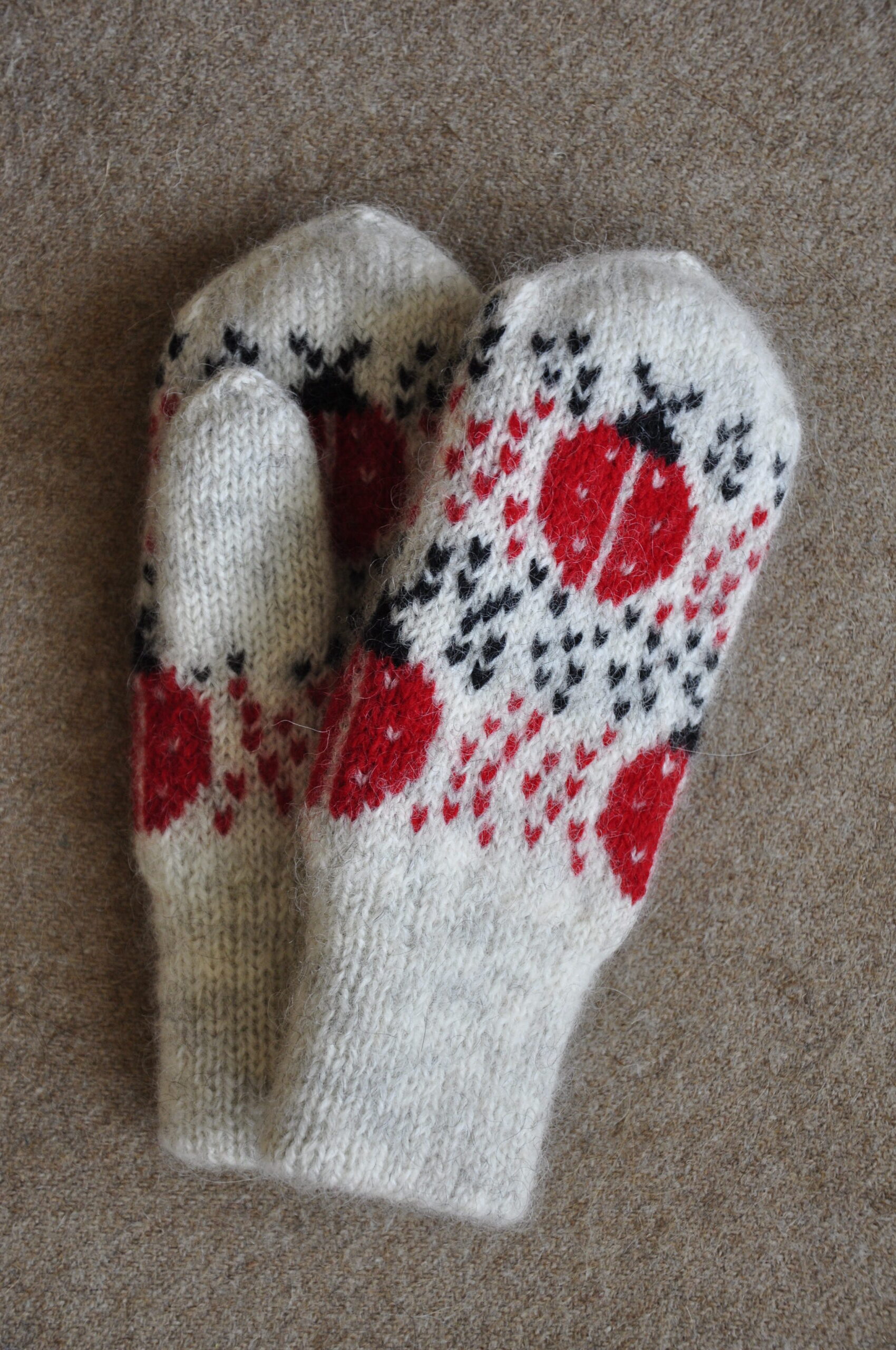 Kirjeldus: Käsikudumismasinal kootud topeltlabakindad.Sobivad umbes 4-5 aastasele lapsele.