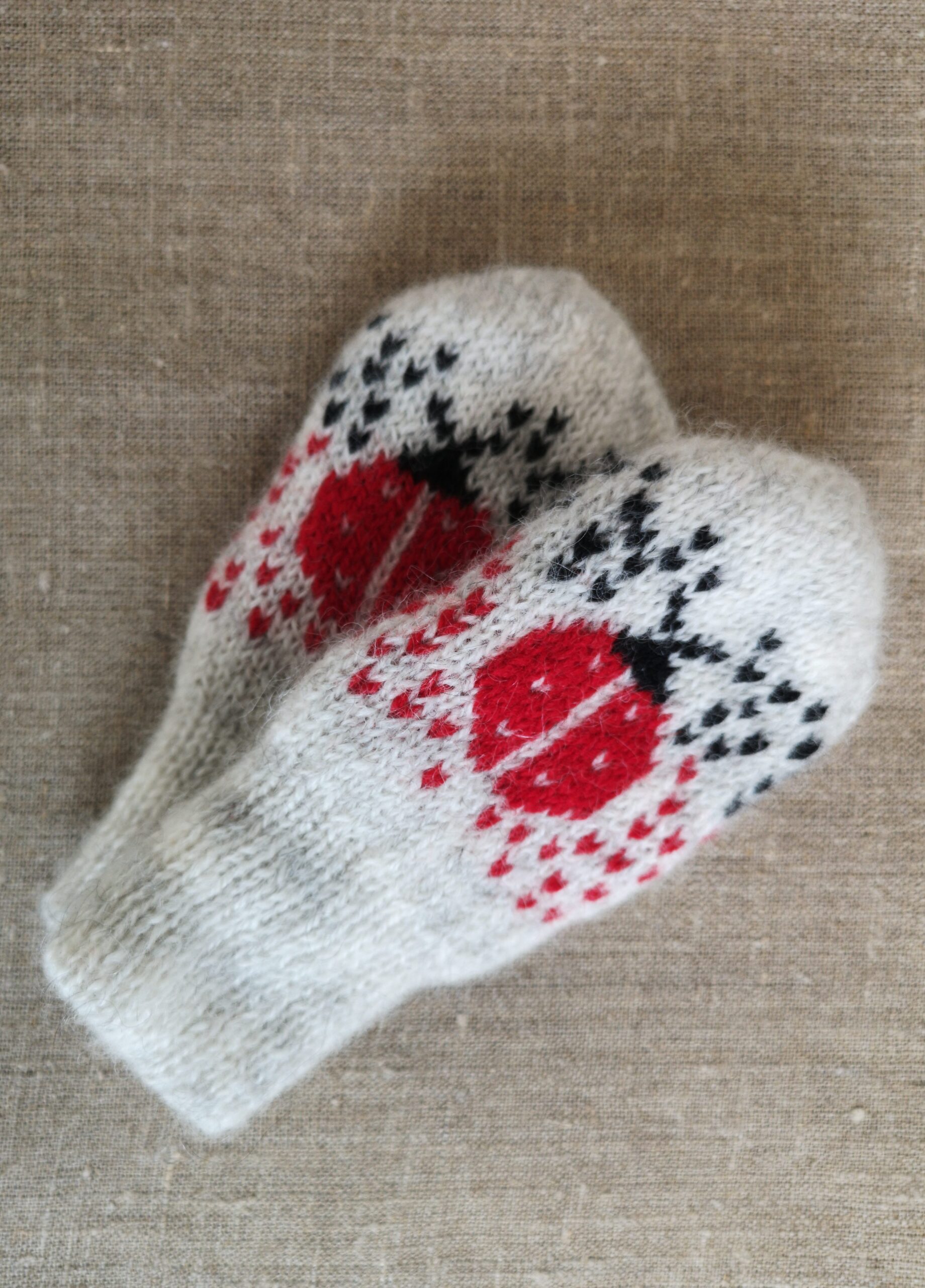 Kirjeldus: Käsikudumismasinal kootud topeltlabakindad