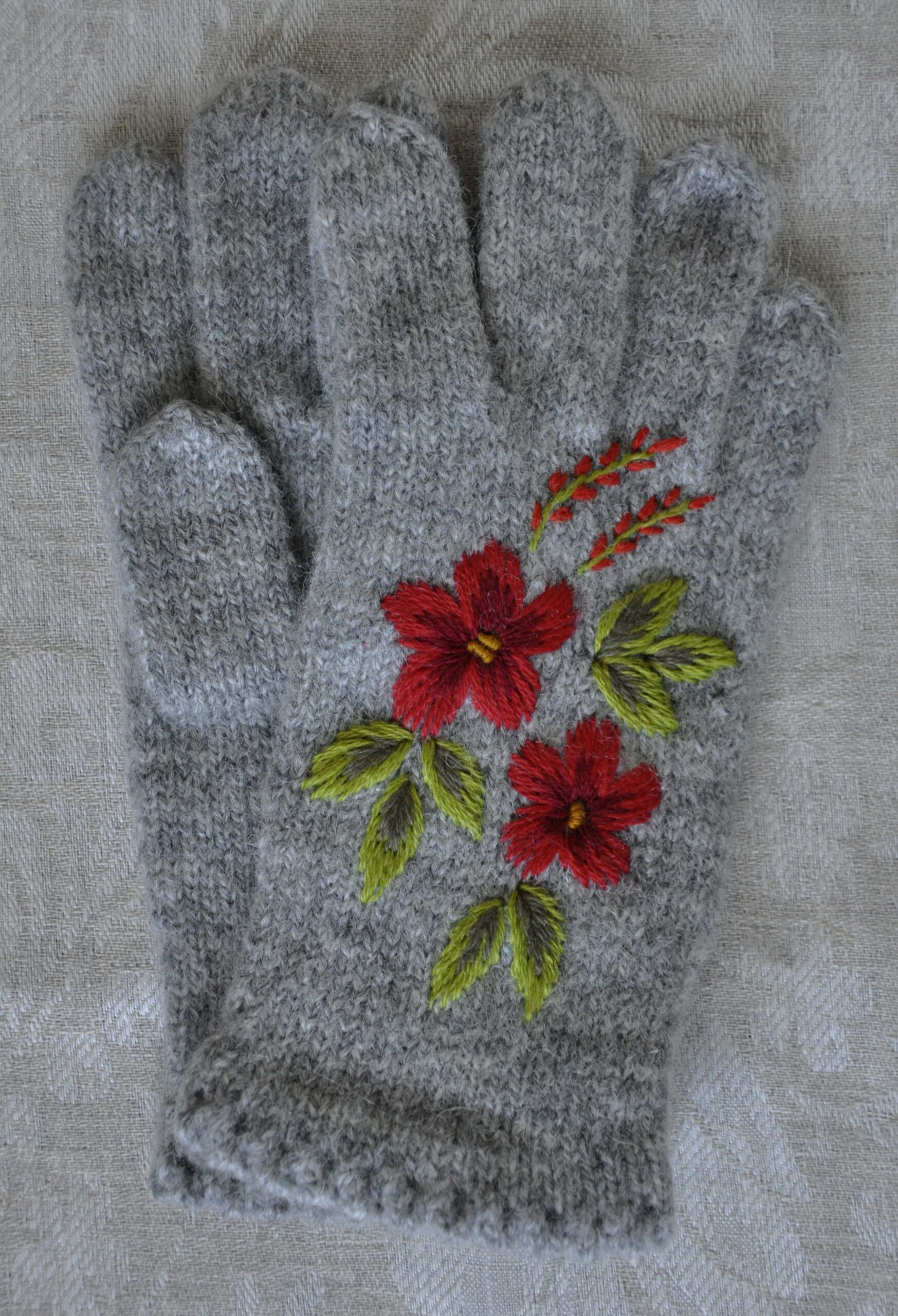 Kirjeldus: Käsikudumismasinal kootud ning käsitsi tikitud sõrmikud