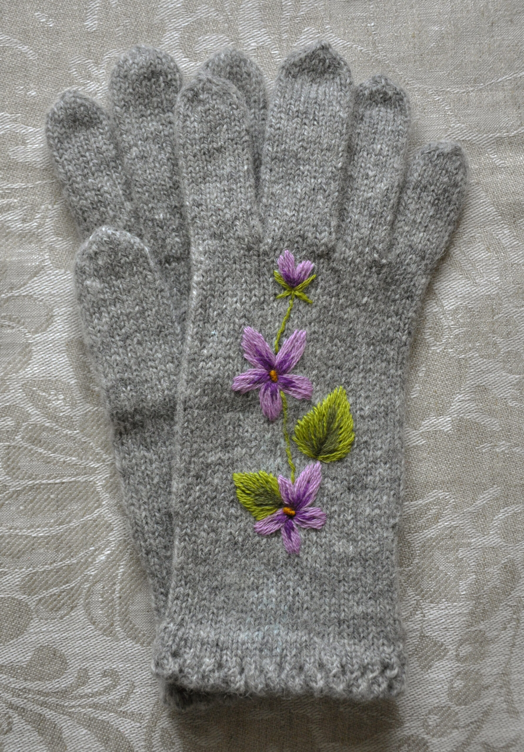 Kirjeldus: Käsikudumismasinal kootud ning käsitsi tikitud sõrmikud