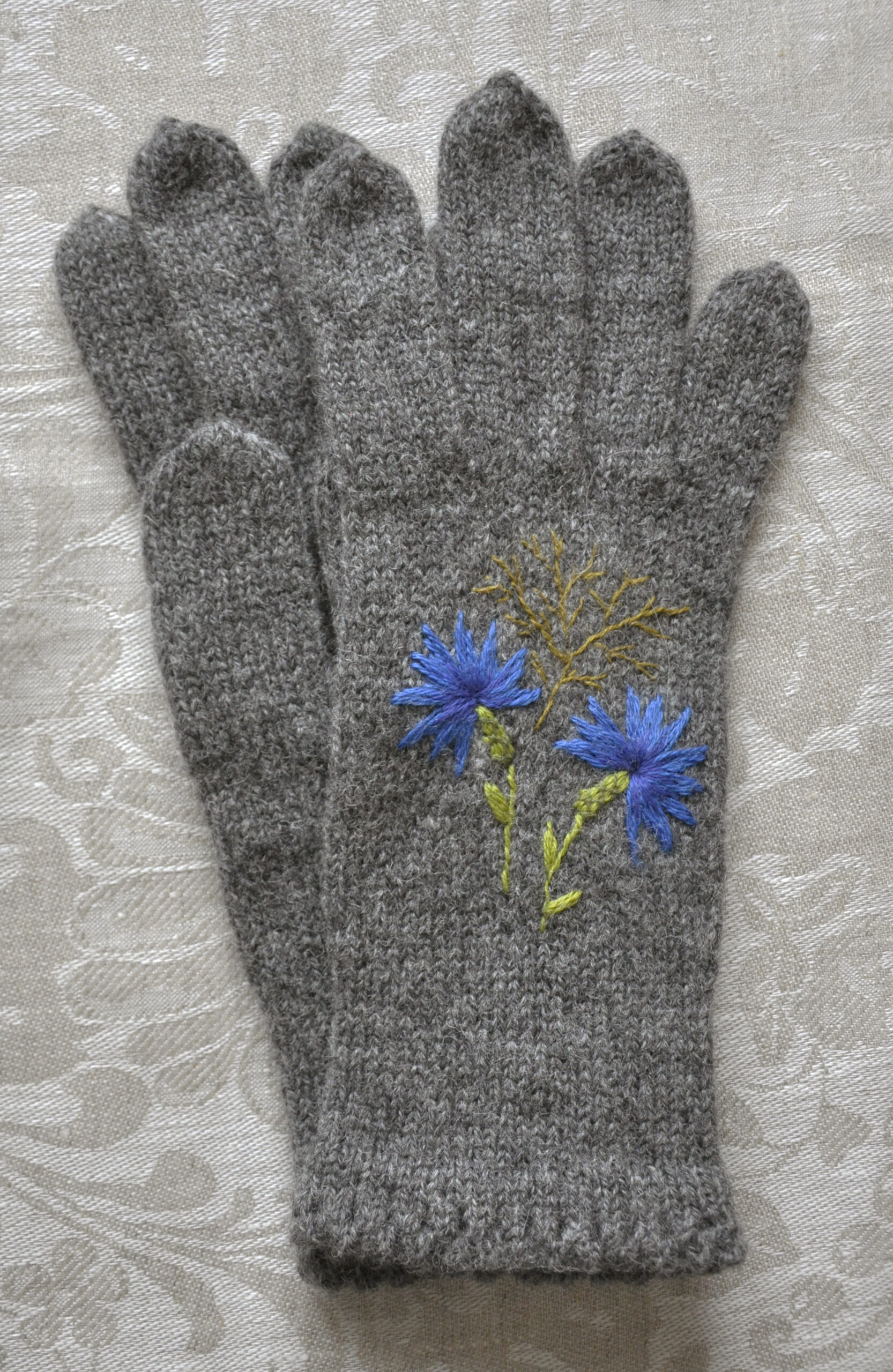 Kirjeldus: Käsikudumismasinal kootud ning käsitsi tikitud sõrmikud