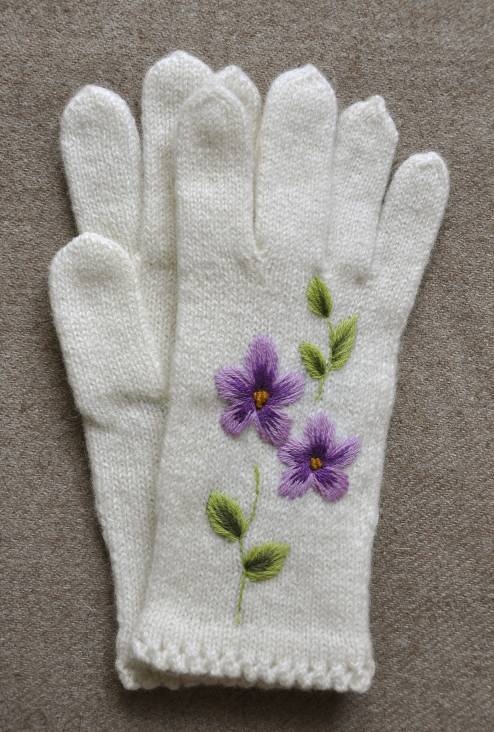 Kirjeldus: Käsikudumismasinal kootud ning käsitsi tikitud sõrmikud