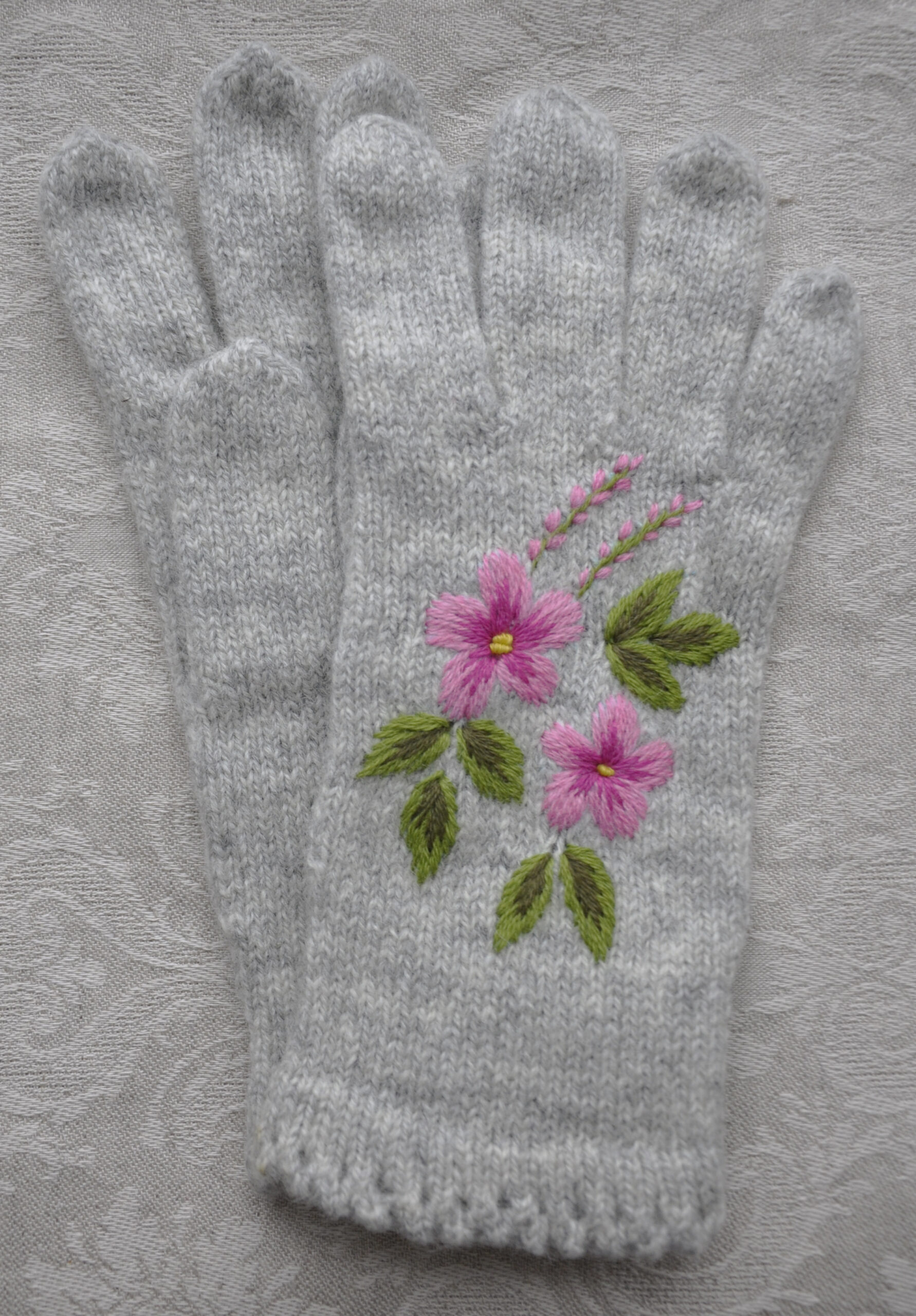 Kirjeldus: Käsikudumismasinal kootud ning käsitsi tikitud sõrmikud