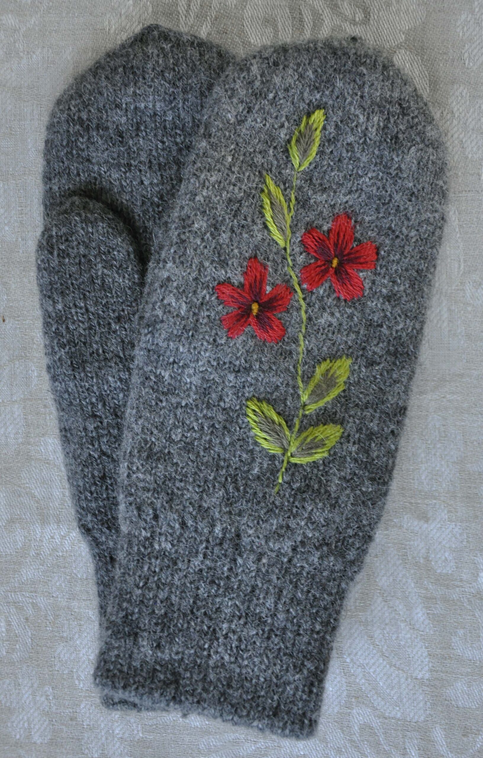 Kirjeldus: Käsi kudumismasinal kootud ning käsitsi tikitud kätised