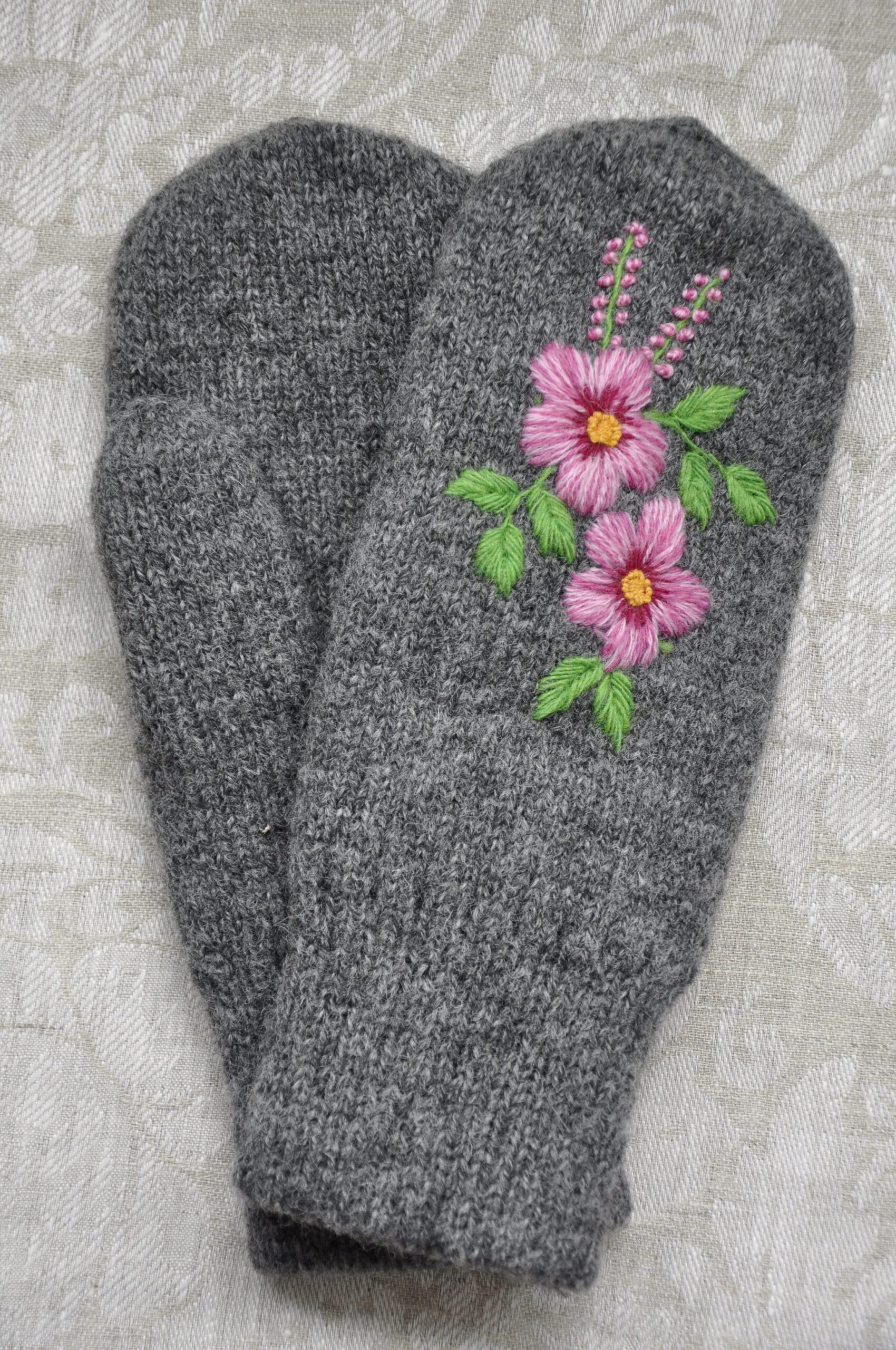 Kirjeldus: Käsikudumismasinal kootud ning käsitsi tikitud topeltlabakindad