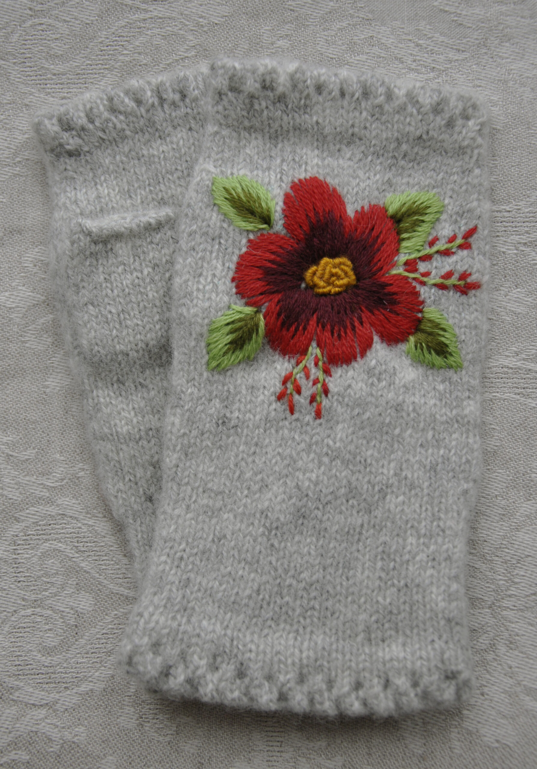 Kirjeldus: Käsi kudumismasinal kootud ning käsitsi tikitud kätised