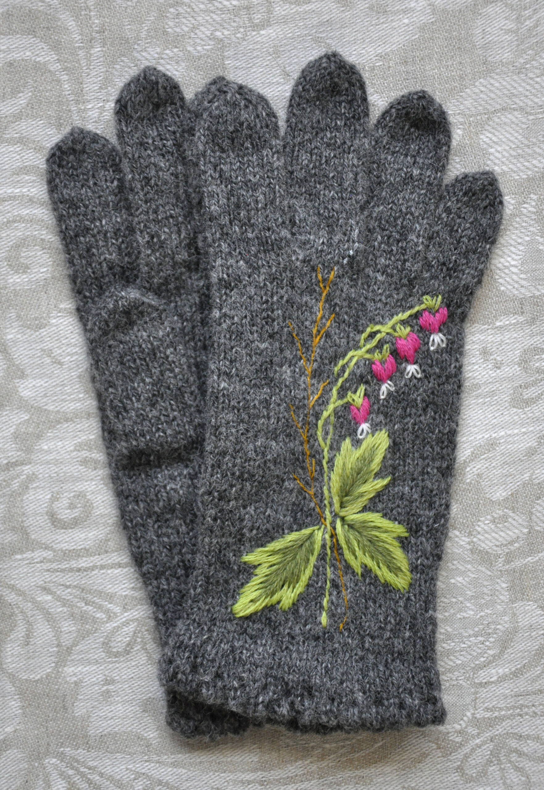 Kirjeldus: Käsikudumismasinal kootud ning käsitsi tikitud sõrmikud