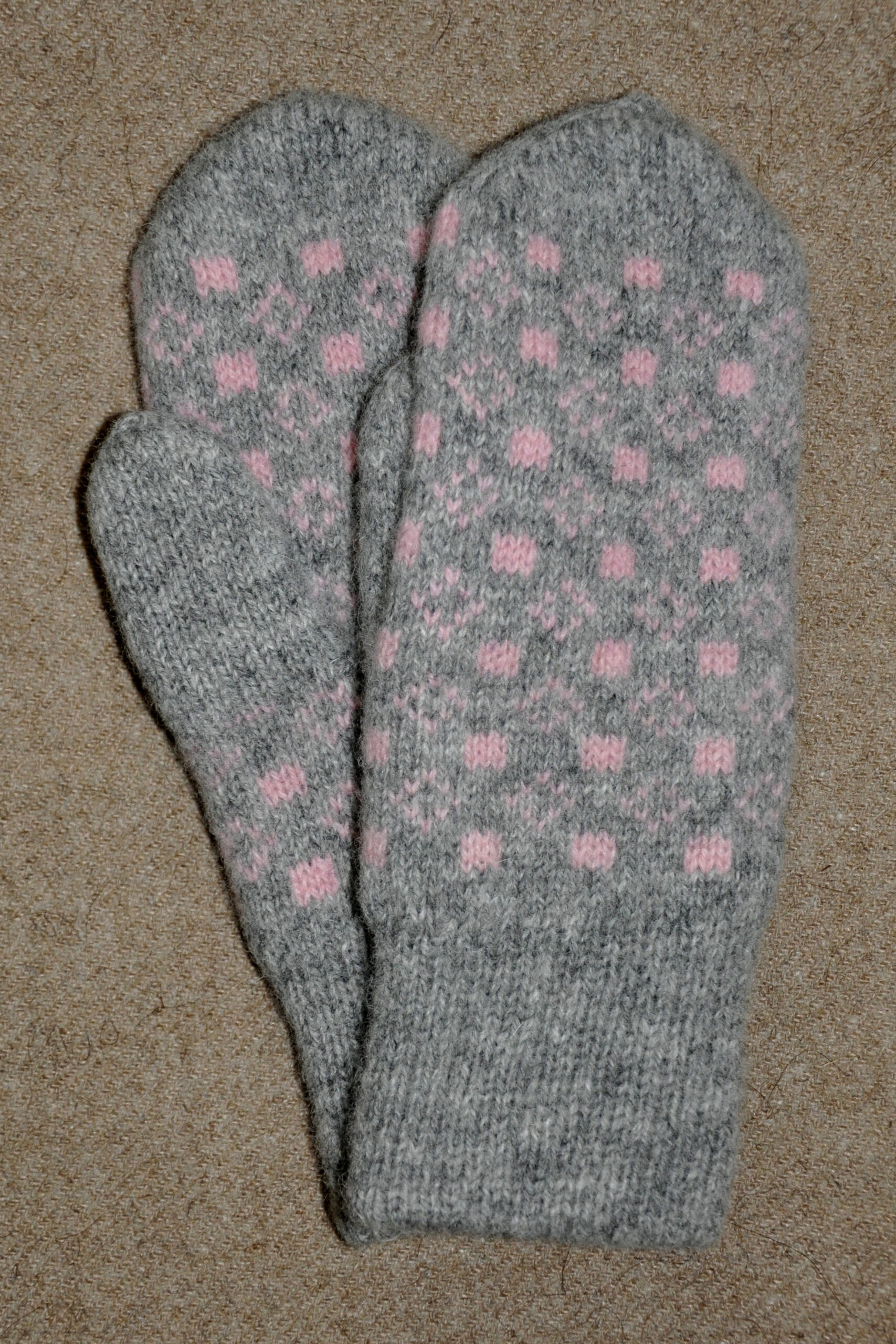 Kirjeldus: Käsikudumismasinal kootud topeltlabakindad