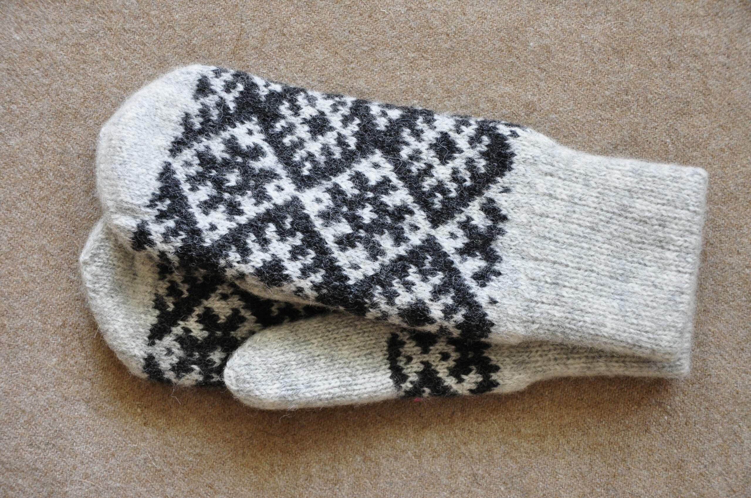 Kirjeldus: Käsikudumismasinal kootud topeltlabakindad