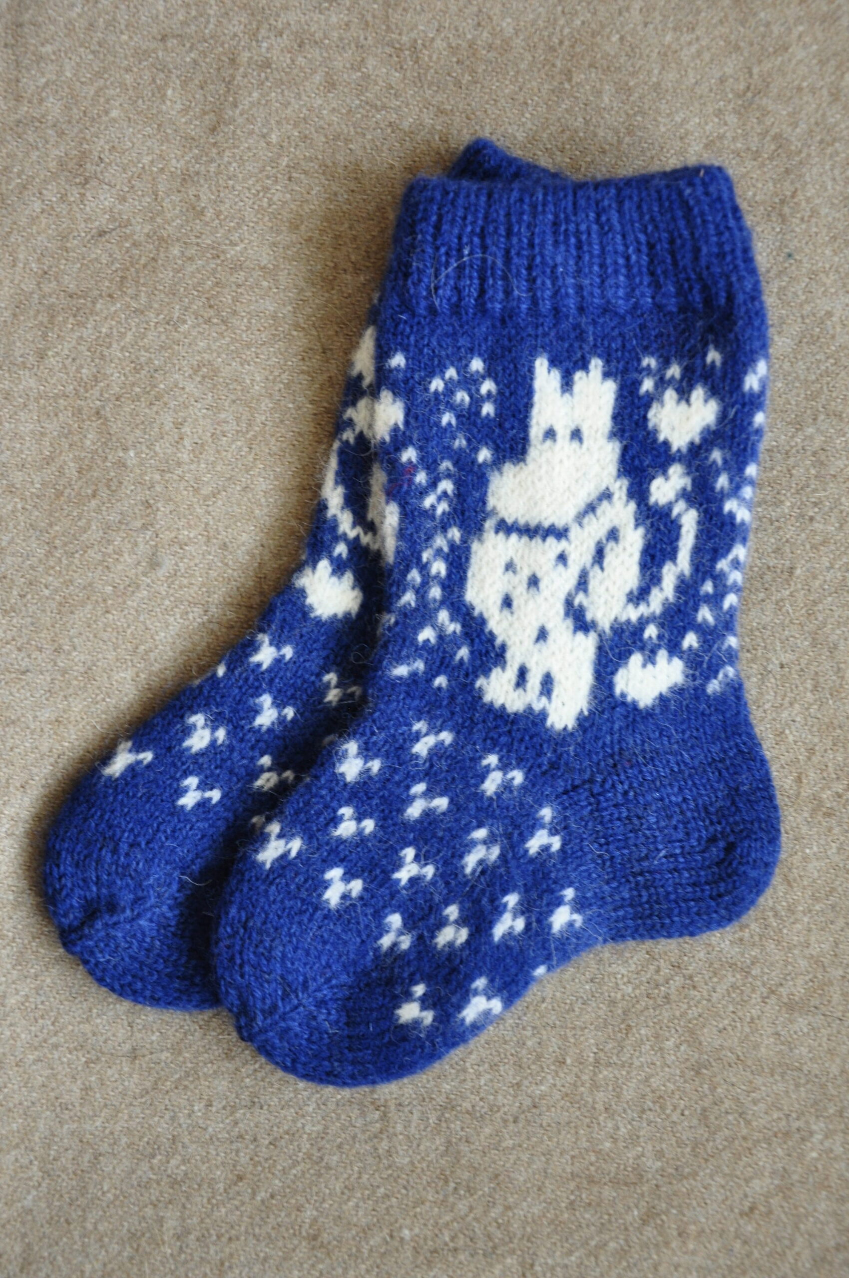 Kirjeldus: Käsikudumismasinal kootud sokid. Suurus21-22.