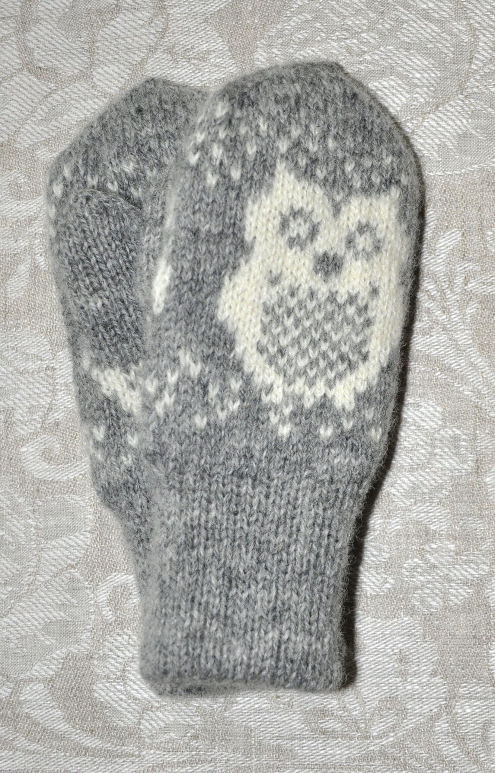 Kirjeldus: Käsikudumismasinal kootud topeltlabakindad. Sobivad umbes 4-5 aastasele lapsele.