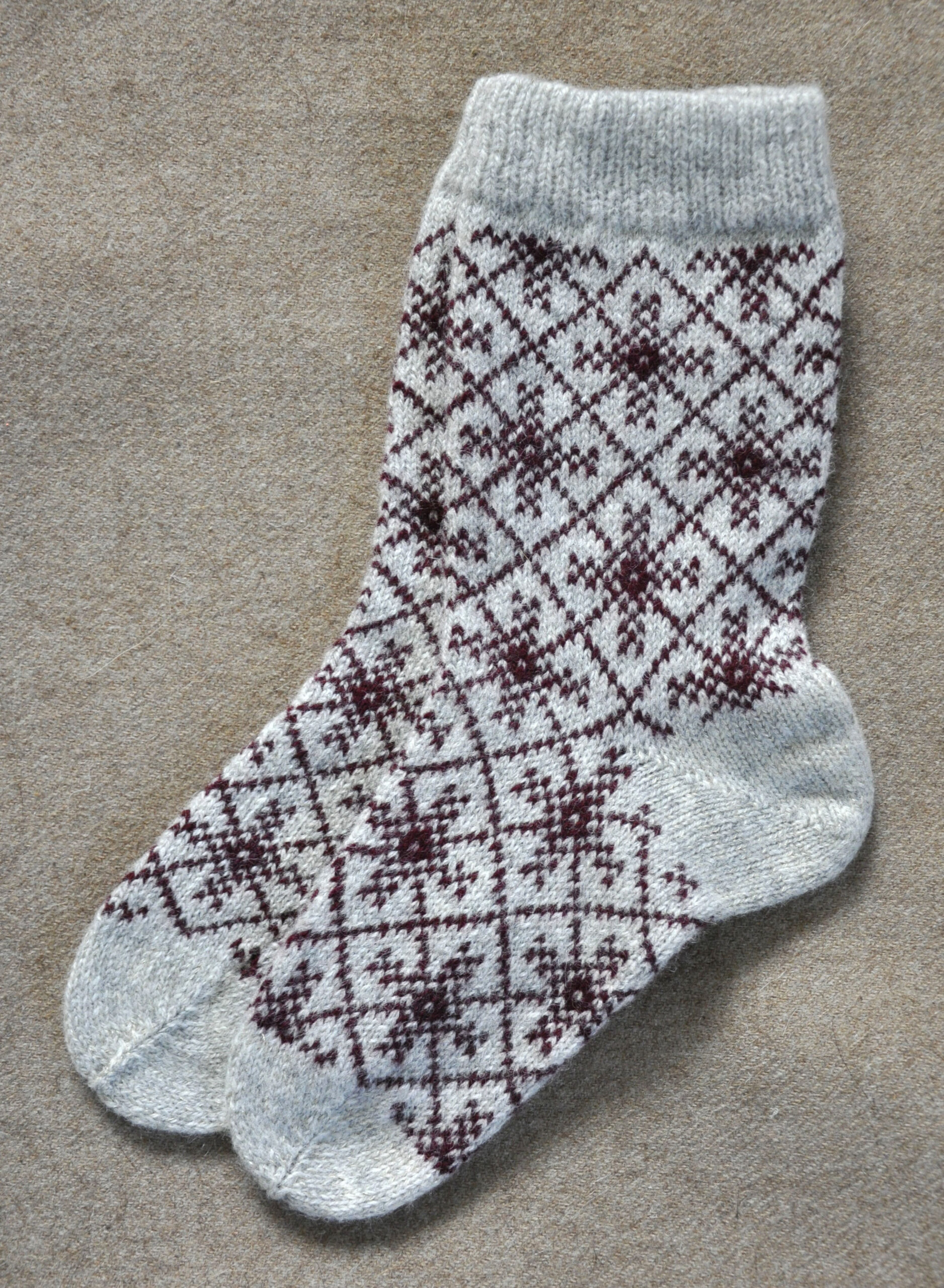 Kirjeldus: Käsikudumismasinal kootud sokid.
