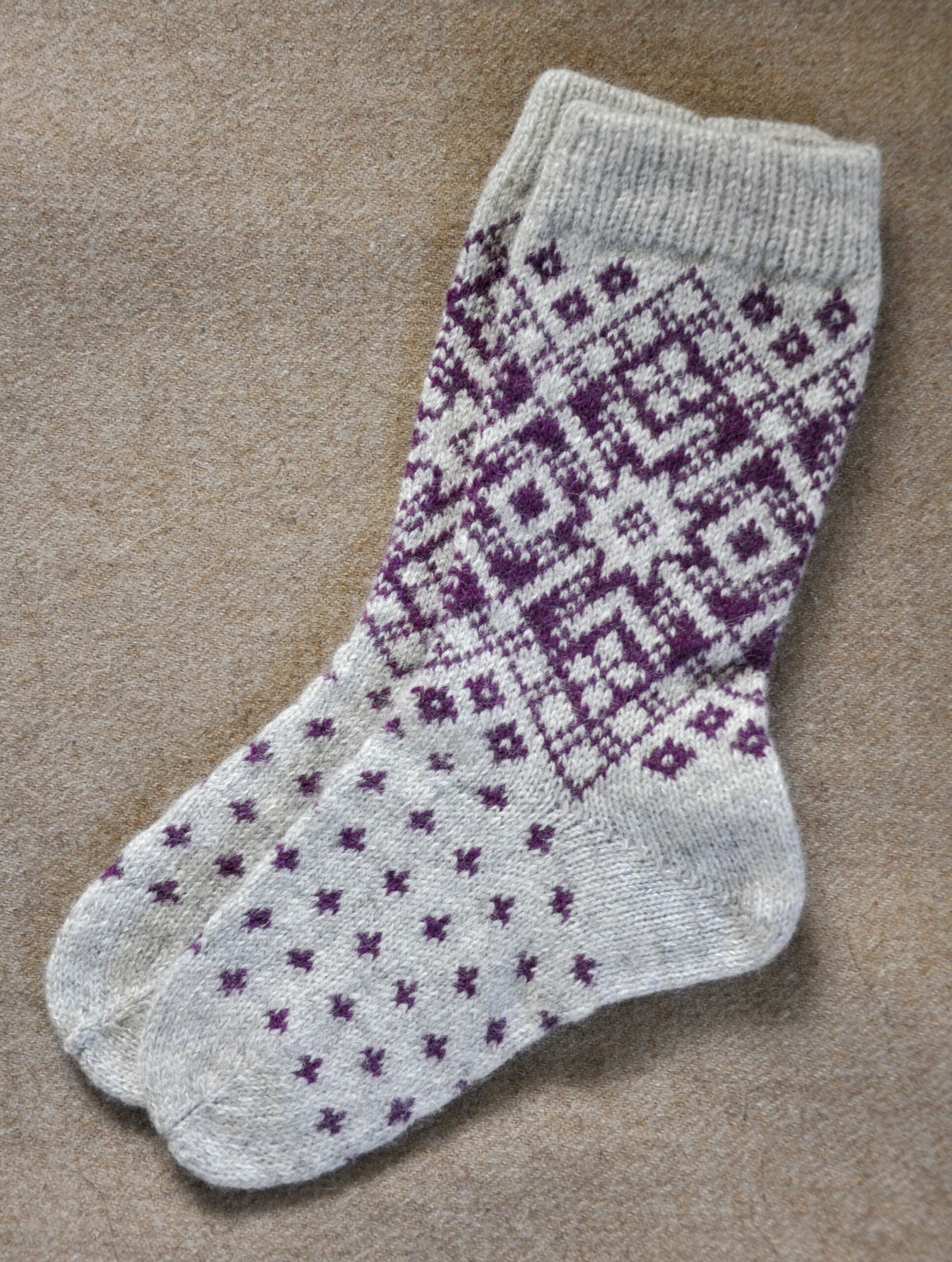 Kirjeldus: Käsikudumismasinal kootud sokid.