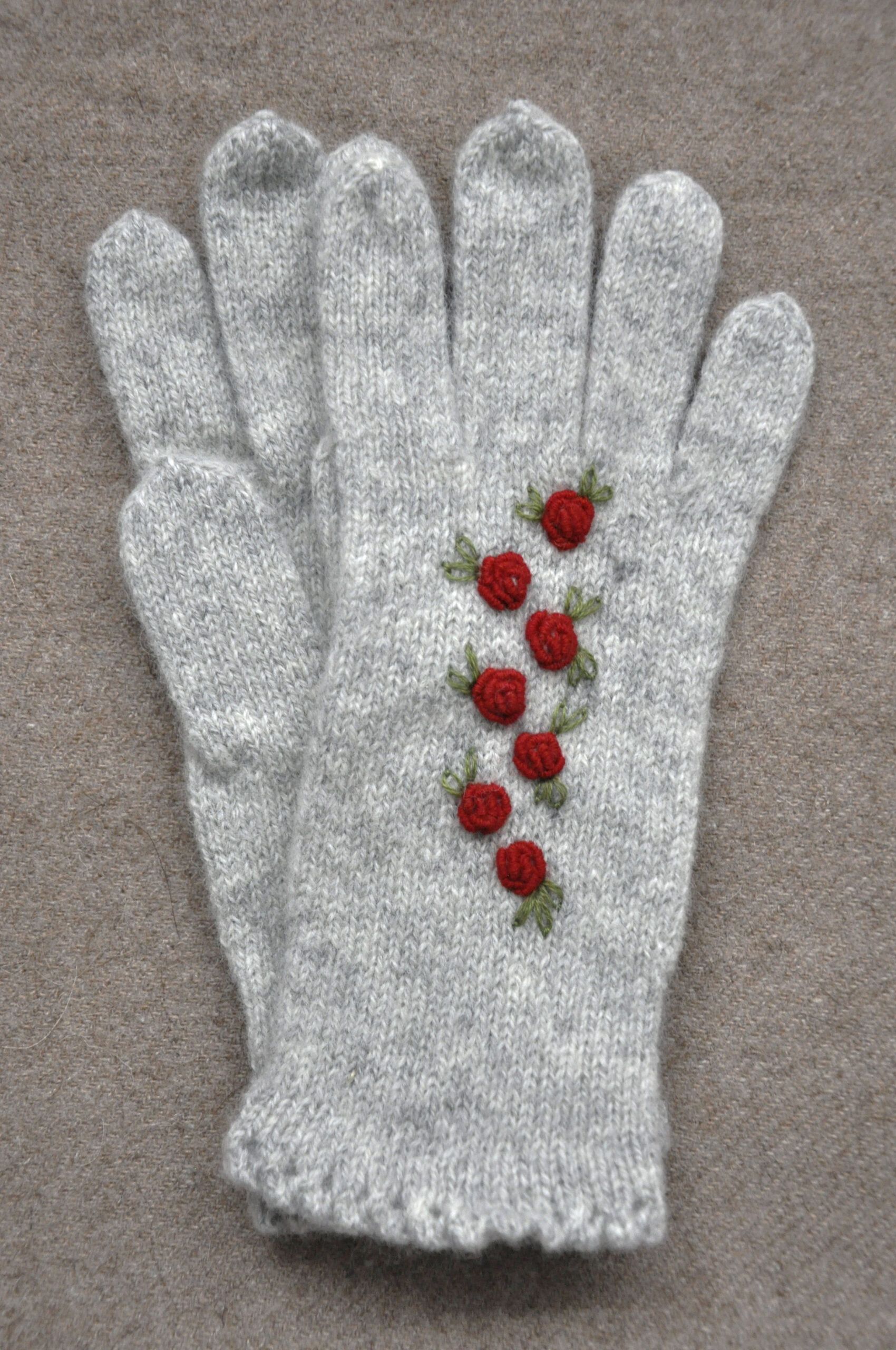 Kirjeldus: Käsikudumismasinal kootud ning käsitsi tikitud sõrmikud