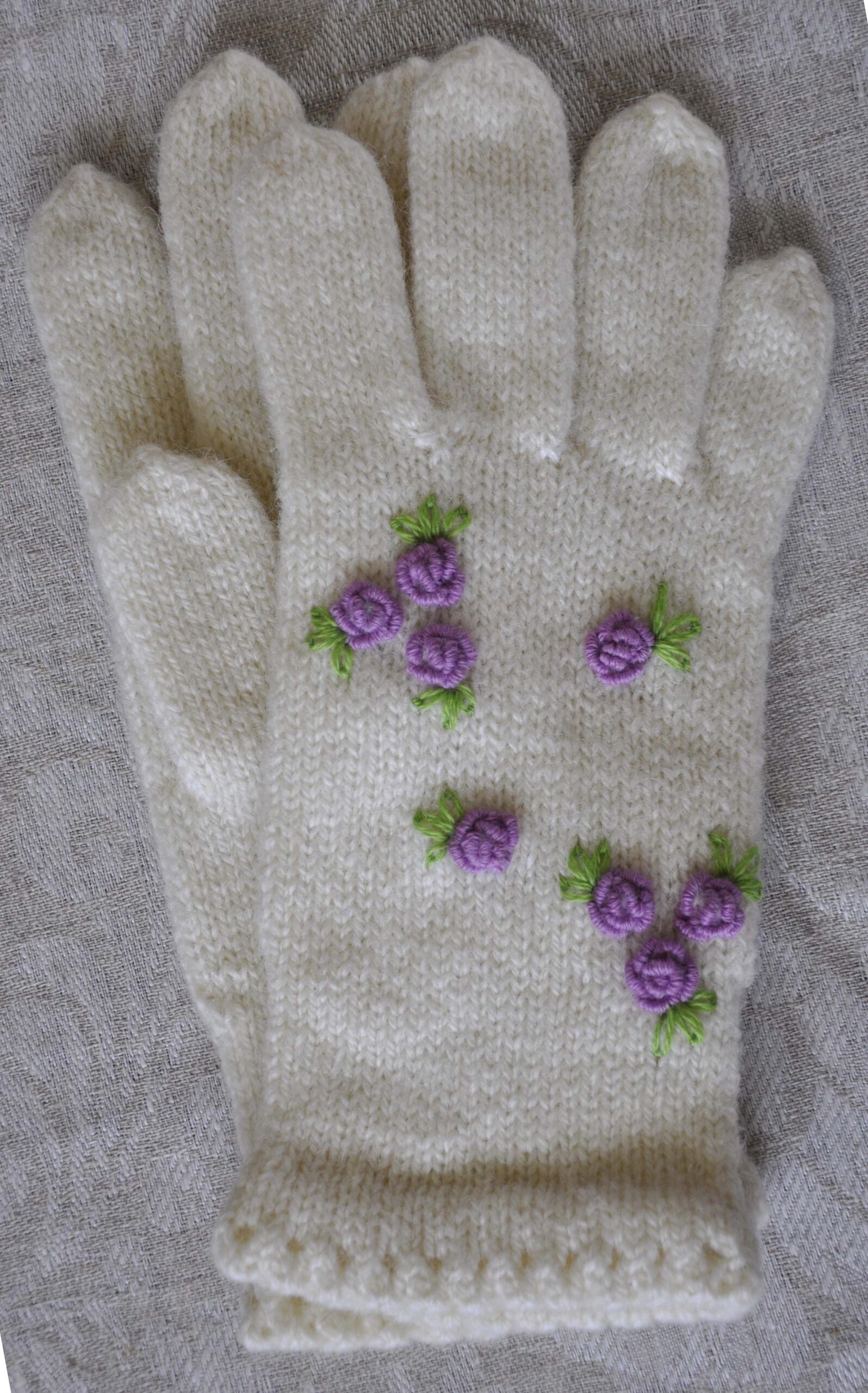 Kirjeldus: Käsikudumismasinal kootud ning käsitsi tikitud sõrmikud