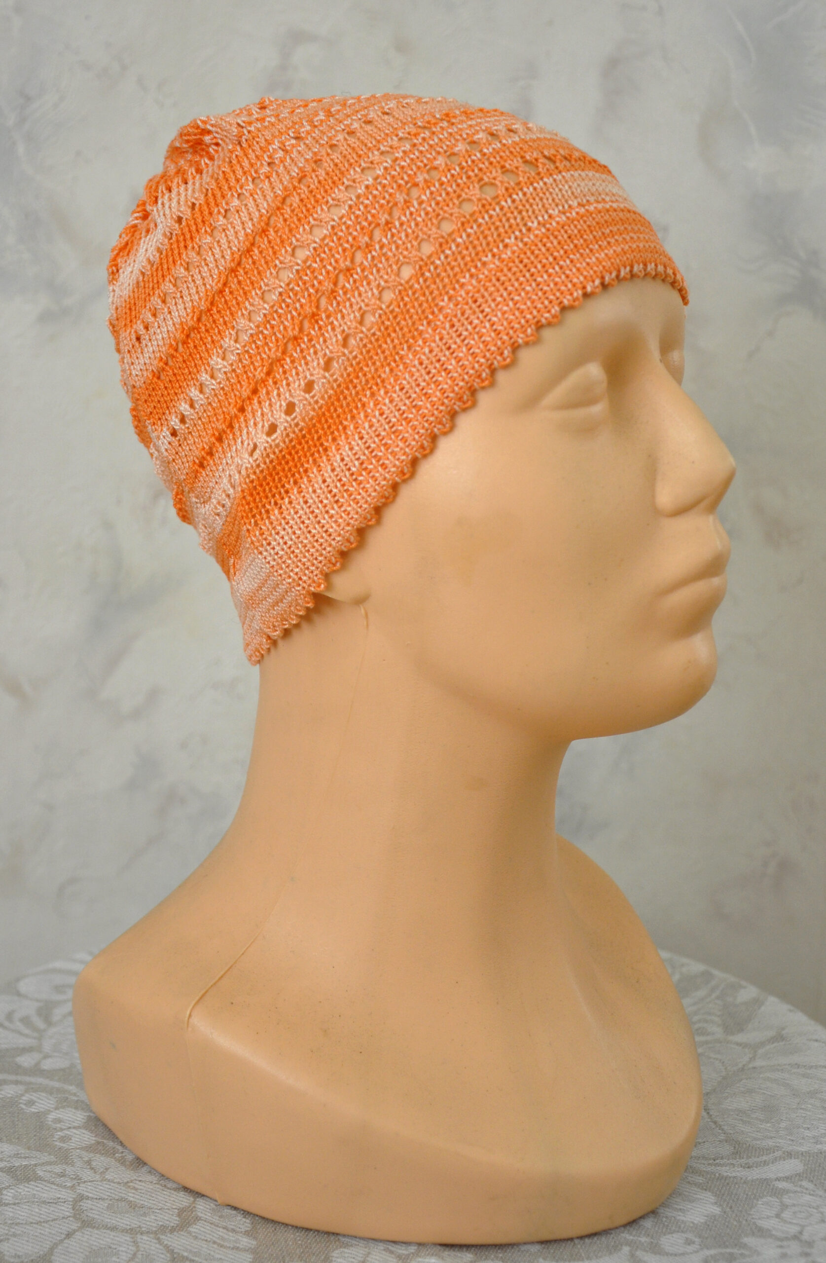 Värv: Oranz Kirjeldus: Käsikudumismasinal kootud müts Koostis: 100% puuvillane Hooldus: 30 kraadine masin pesu