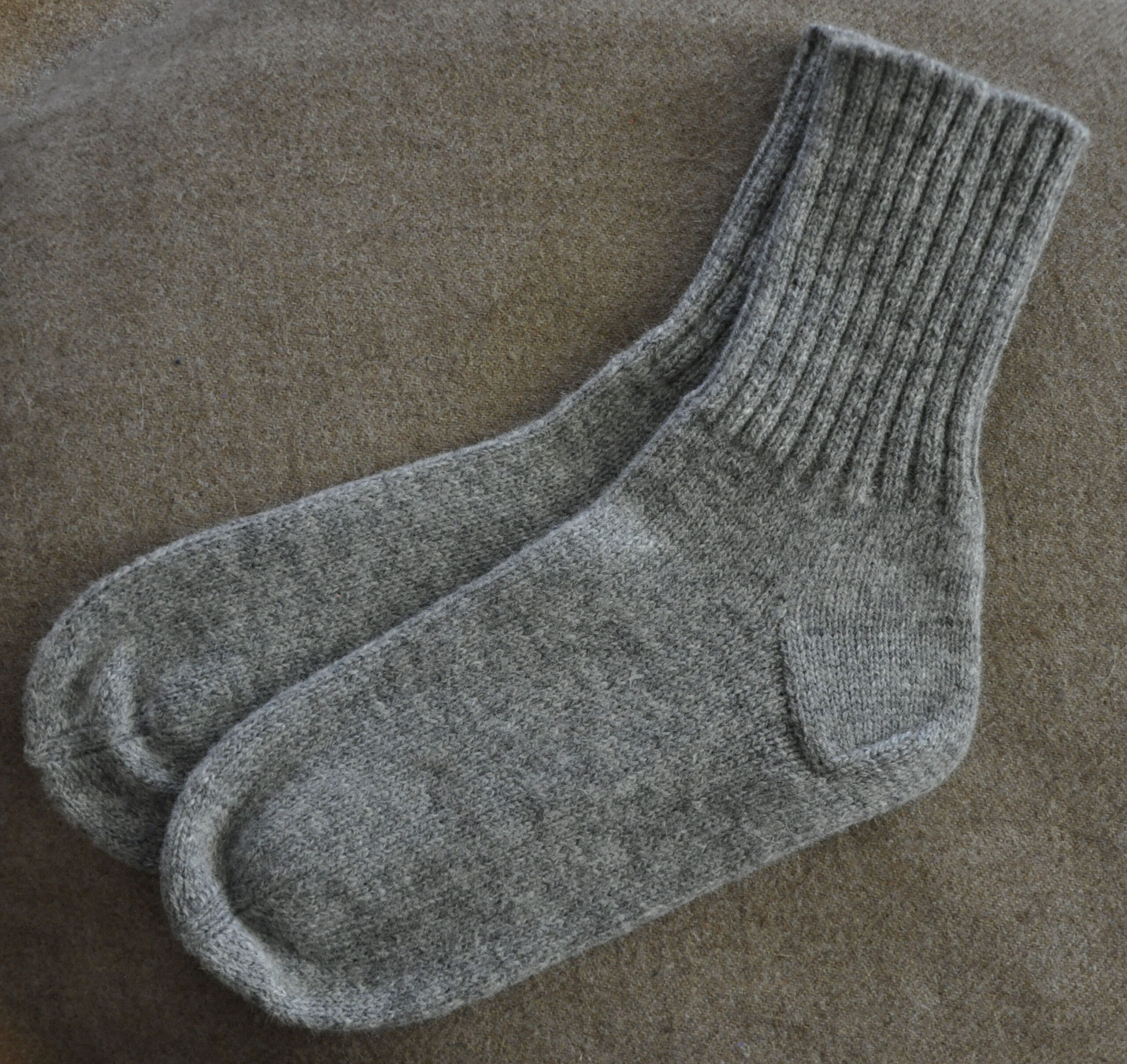 Kirjeldus: Käsikudumismasinal kootud sokid.