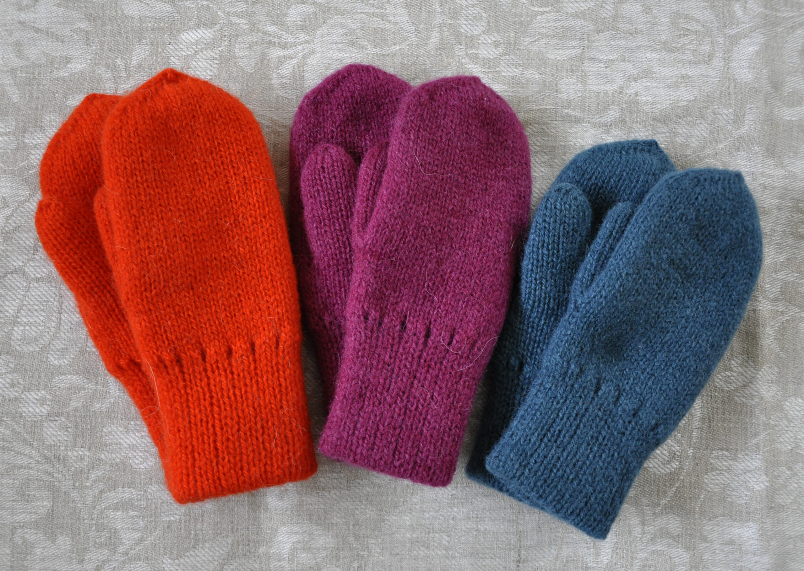Kirjeldus: Käsikudumismasinal kootud topeltlabakindad.